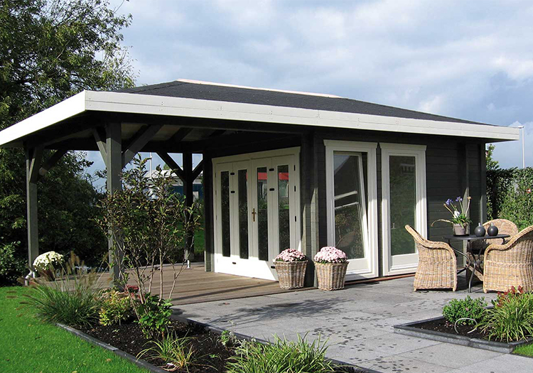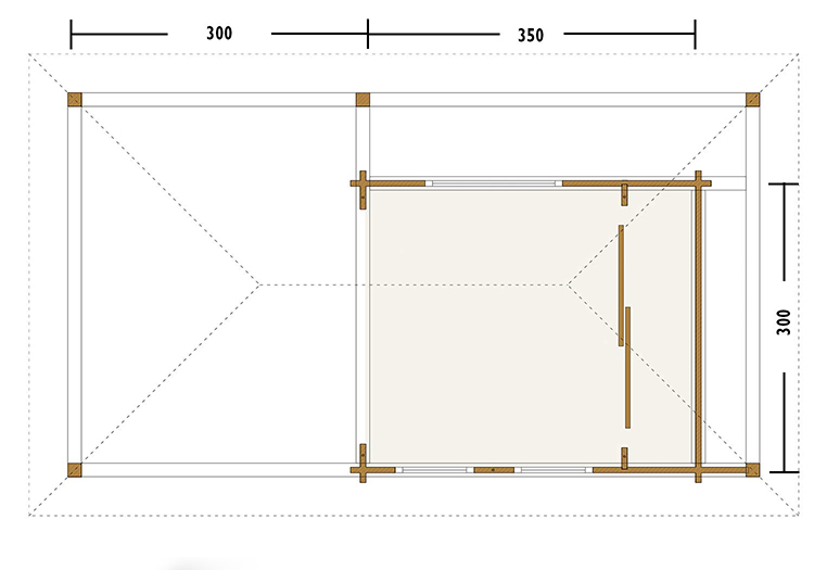 The Chicago is a 58mm wall log cabin with a building size of 3.5m x 3.0m. Overall size including canopy is app 4.0m x 6.5m.