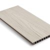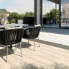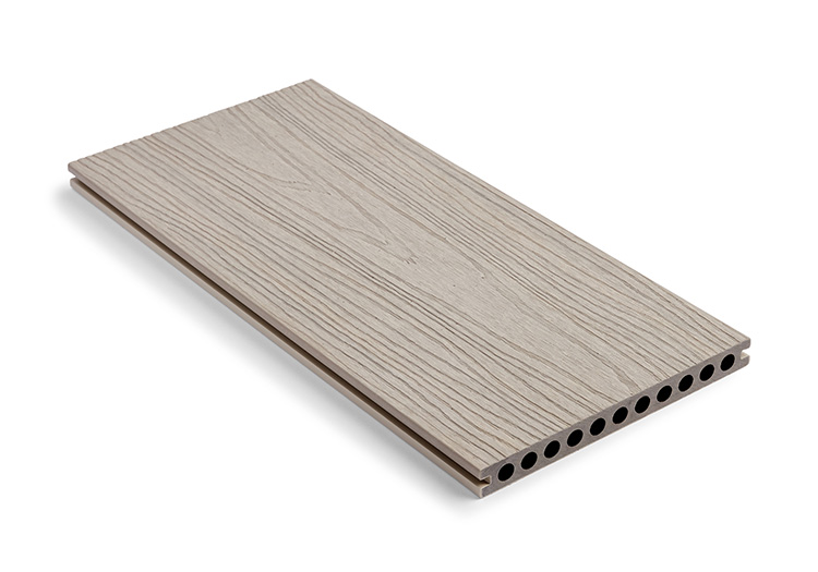 Ecoscape UK Grande decking has a dual surface finish with wood grain on each side: the front of the board is coloured in a toned ‘Chateau’, and the rear is coloured in the light-grey ‘Dovetail’ – a perfect alternative or accompaniment to stone or ceramic paving. At 9 inches wide (225mm), it really does provide a premium, contemporary finish.