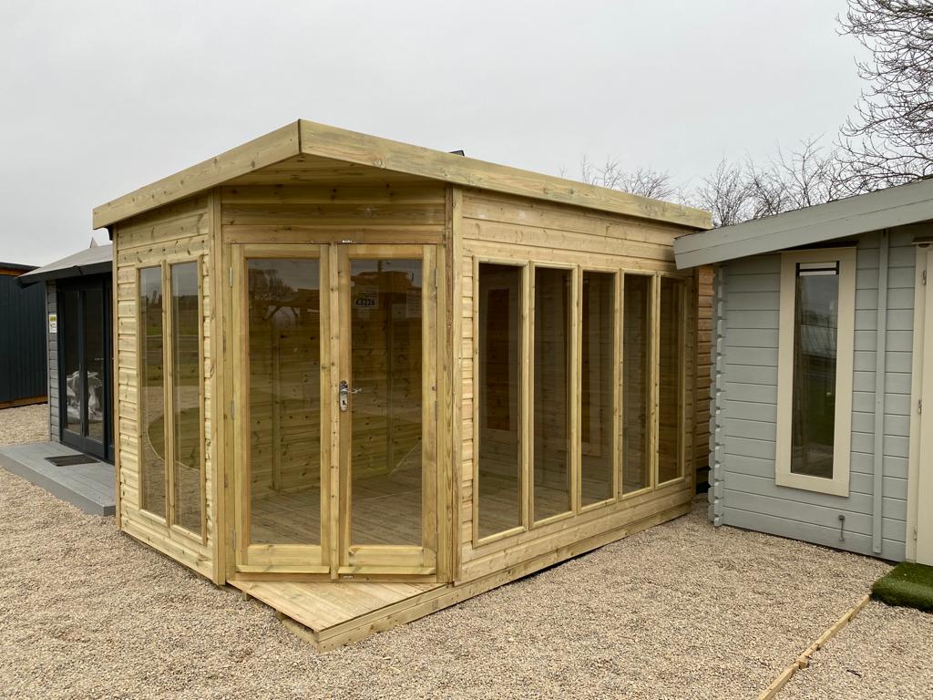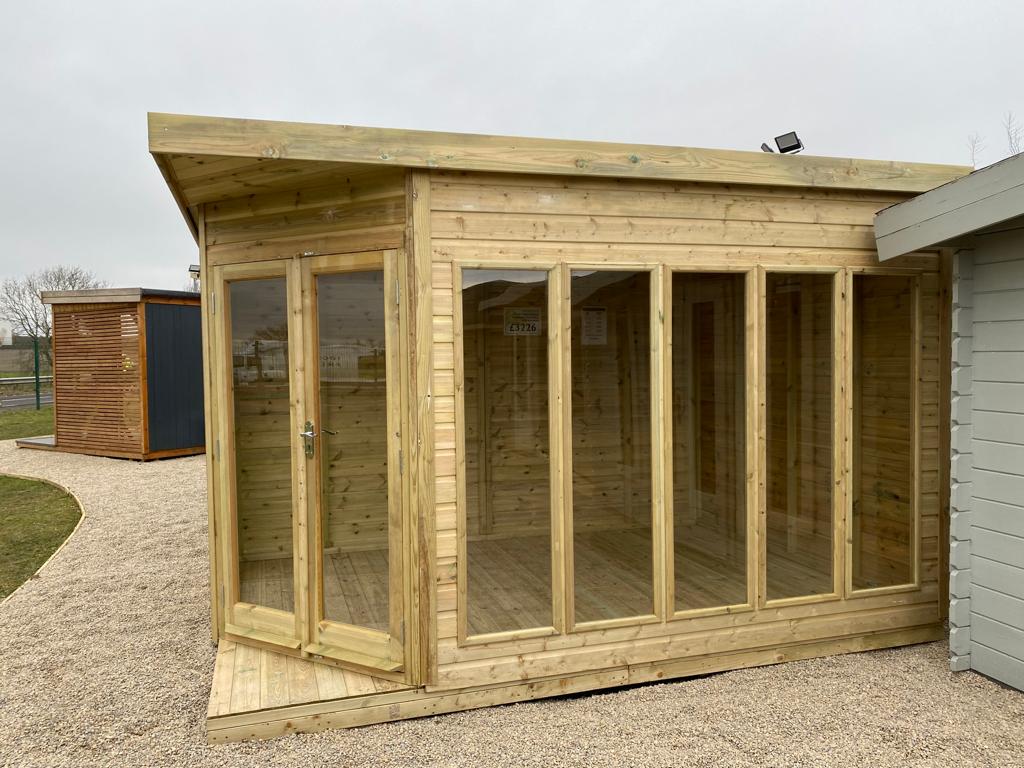 With its full-length windows and double doors, this building allows a lot of natural light to flood in, creating a bright and airy atmosphere. It is made of pressure-treated timber, producing a high-quality finish.