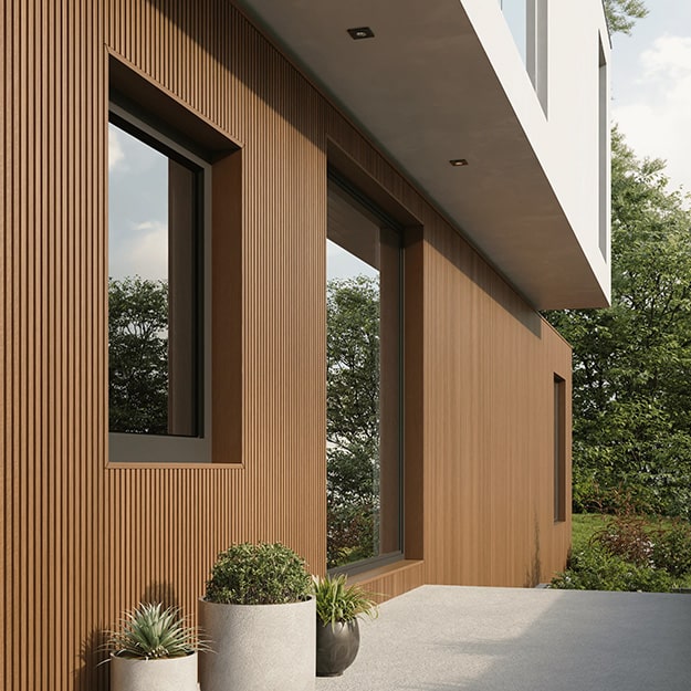 The Ecoscape Slatted Cladding Reveal Trim is designed to enable the perfect matching finish for your composite cladding around window and door reveals. Much like our Slatted Cladding End Trim, but with an extended return, can be easily cut down to clad deep or shallow reveals around windows and doors, or to finish back to the wall structure where cross-battens, or thicker battens are used to support your cladding. Available in the full range of colours, and installed using our easy, hidden fixing system.