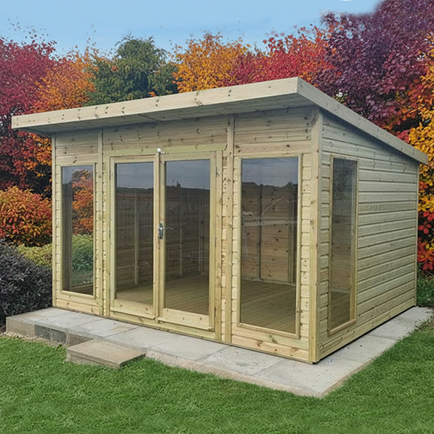 The Atkinsons range of garden sun rooms offers a perfect retreat in your garden. Crafted from high-quality timber to the highest standards, pressure-treated for a longer lifespan. With a variety of options and great standard features, there’s something for everyone. The full-length doors and windows allow plenty of natural light into the building, creating a fantastic, airy feel.