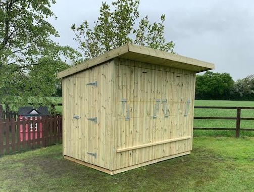 Comes as standard with a pent roof design. 4’6″ x 6′ 12mm matchboard. Pressure treated for a longer life.