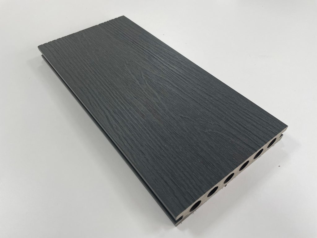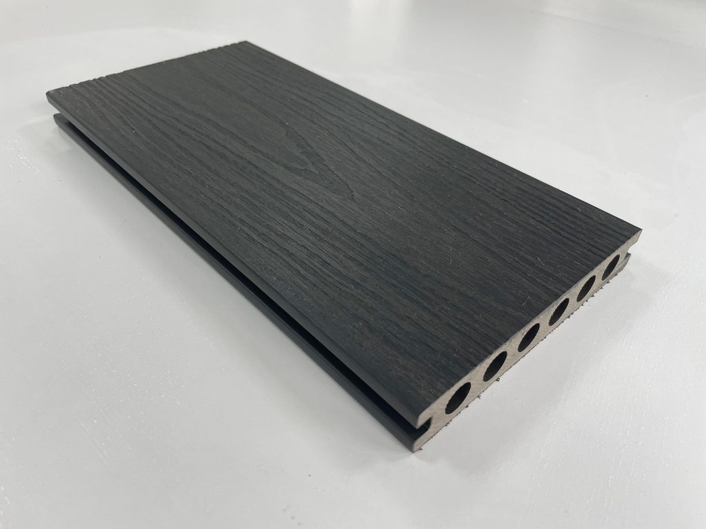 A market leading WPC decking board produced with 63% wood powder, 29% recycled HDPE, 8% glue and anti-fungal agents. The mix of materials brings not only stability but also durability , creating an attractive and strong composite deck board.